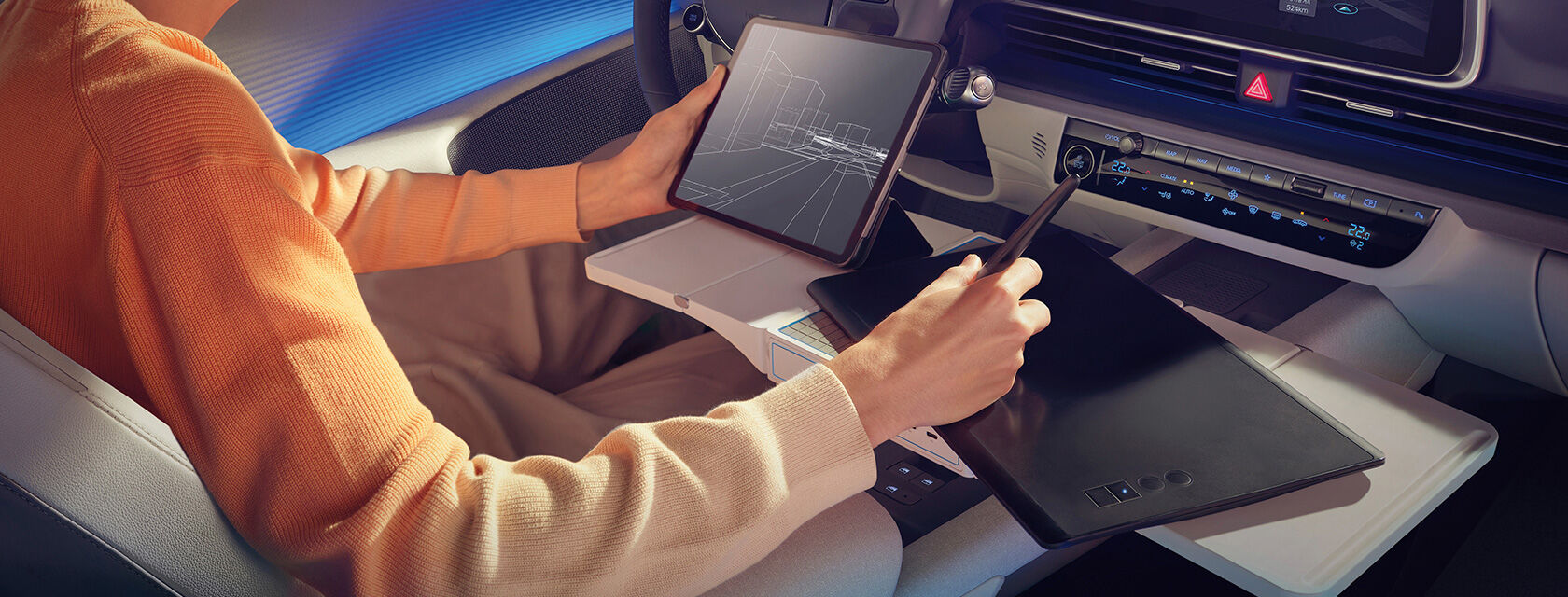 운전석·동승석에 리클라이닝이 들어가고, 무중력 자세처럼 누울 수 있어 장거리 주행 후 피로 회복에 좋아요.